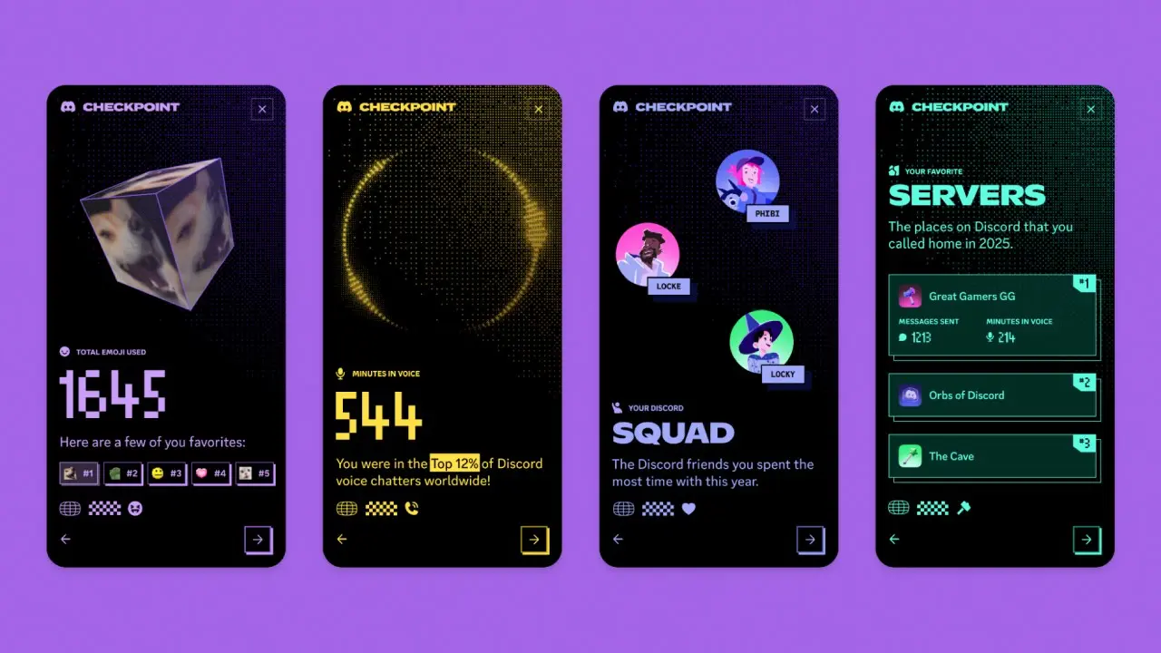 Melansir dari pengumuman resmi di aplikasi, Discord Checkpoint 2025 adalah ringkasan statistik yang dipersonalisasi untuk setiap pengguna. Data yang ditampilkan mencakup: