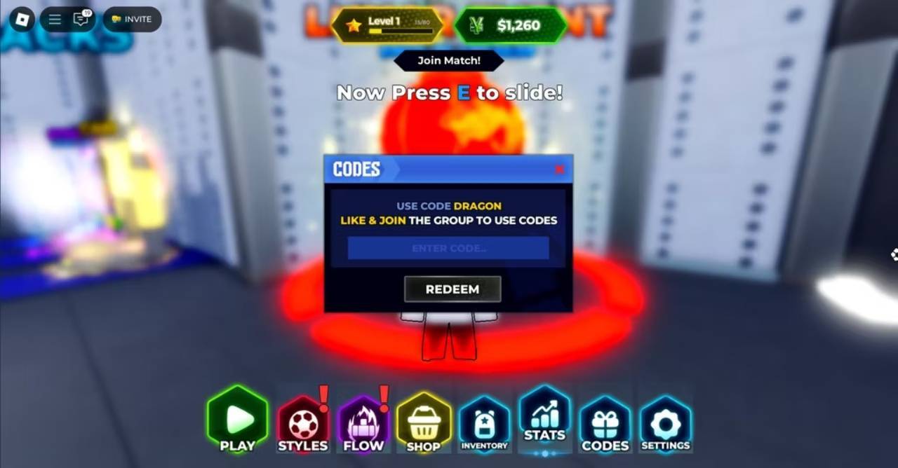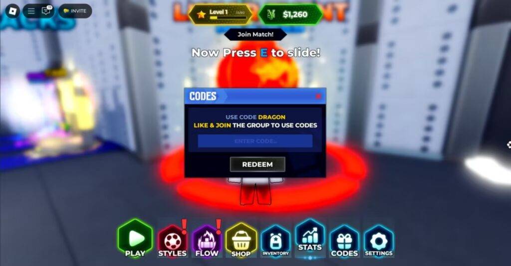 Buka game Blue Lock Rivals di Roblox, lalu pilih tombol “Codes” yang terletak di bagian bawah layar lobby, sebelah menu Settings. Ketik atau salin kode ke kolom “Enter Code” dan tekan tombol Redeem untuk mengklaim hadiah. Hadiah akan langsung masuk ke inventori jika kode masih berlaku.