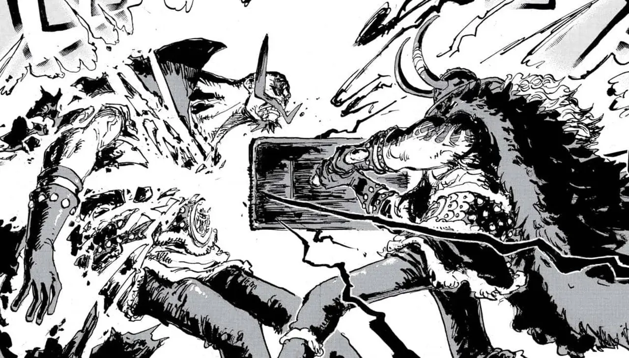 Gaban sebelumnya telah memahami bahwa musuh yang terkait dengan Imu hanya dapat ditaklukkan dengan serangan Haoshoku Haki yang sangat kuat. Namun, menghadapi lawan yang juga memiliki Haoshoku Haki membuat pertarungan menjadi jauh lebih berbahaya dan rumit. Bab ini menegaskan ancaman Imu meningkat drastis ketika ia “meminjam” tubuh individu kuat, seperti yang pernah terjadi pada Xebec.