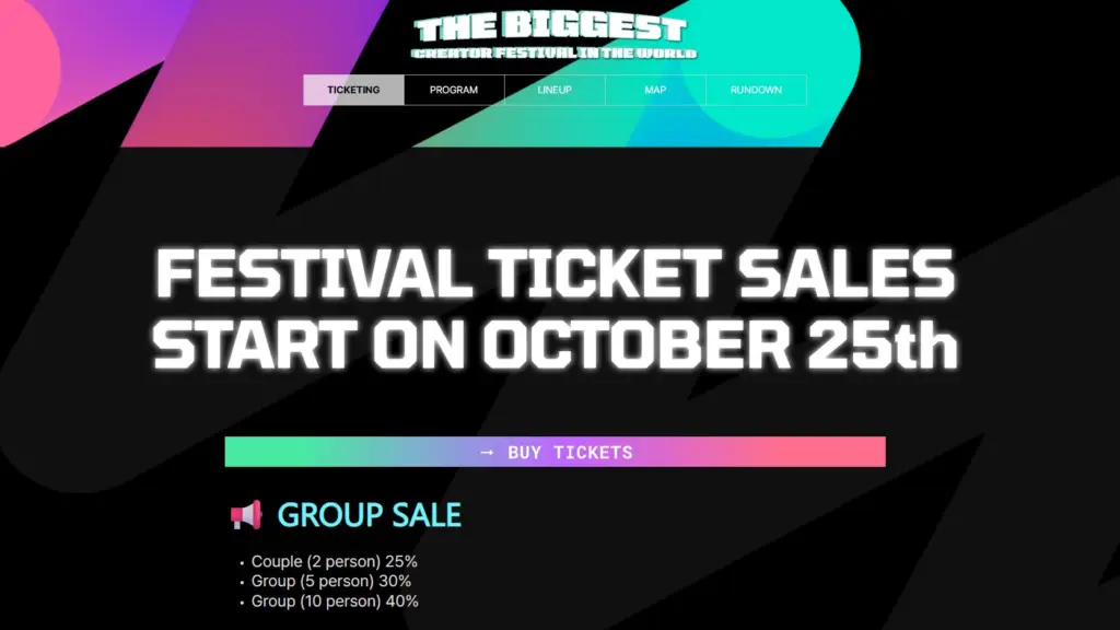 Pembelian tiket dapat dilakukan melalui dua jalur utama: online dan offline. Untuk pembelian daring, pengunjung diarahkan ke platform mitra tiket resmi yang ditunjuk oleh penyelenggara.