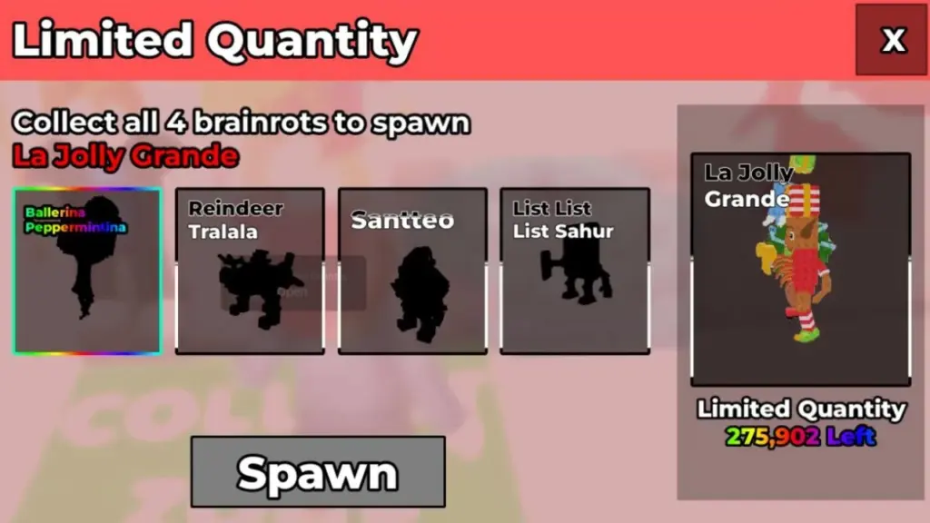 Event ini menjadi momen yang paling ditunggu karena menghadirkan berbagai “Brainrot” bertema Natal yang hanya tersedia dalam waktu terbatas. Beberapa di antaranya bahkan dikategorikan sangat langka, memiliki nilai jual tinggi dalam permainan, dan menjadi incaran para kolektor virtual.